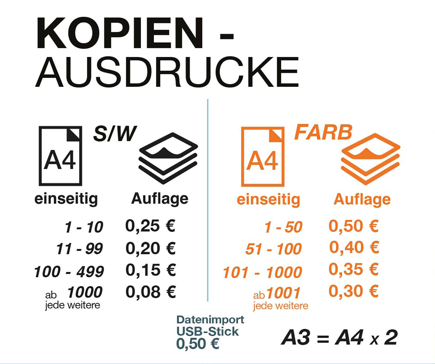 Preisliste Kopien * Alle Preise inkl. MwSt., Änderungen und Irrtümer vorbehalten. Weitere Auflagen und Rabatte auf Anfrage.